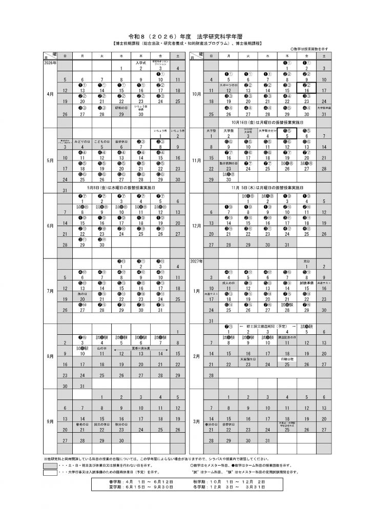 2026年度 研究科学年暦