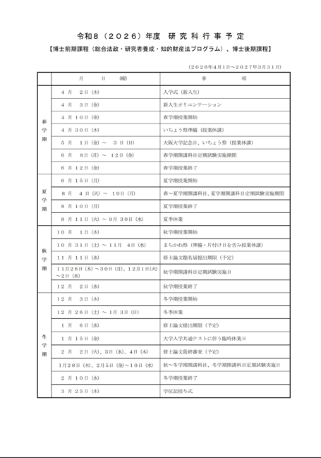 2026年度 研究科行事予定